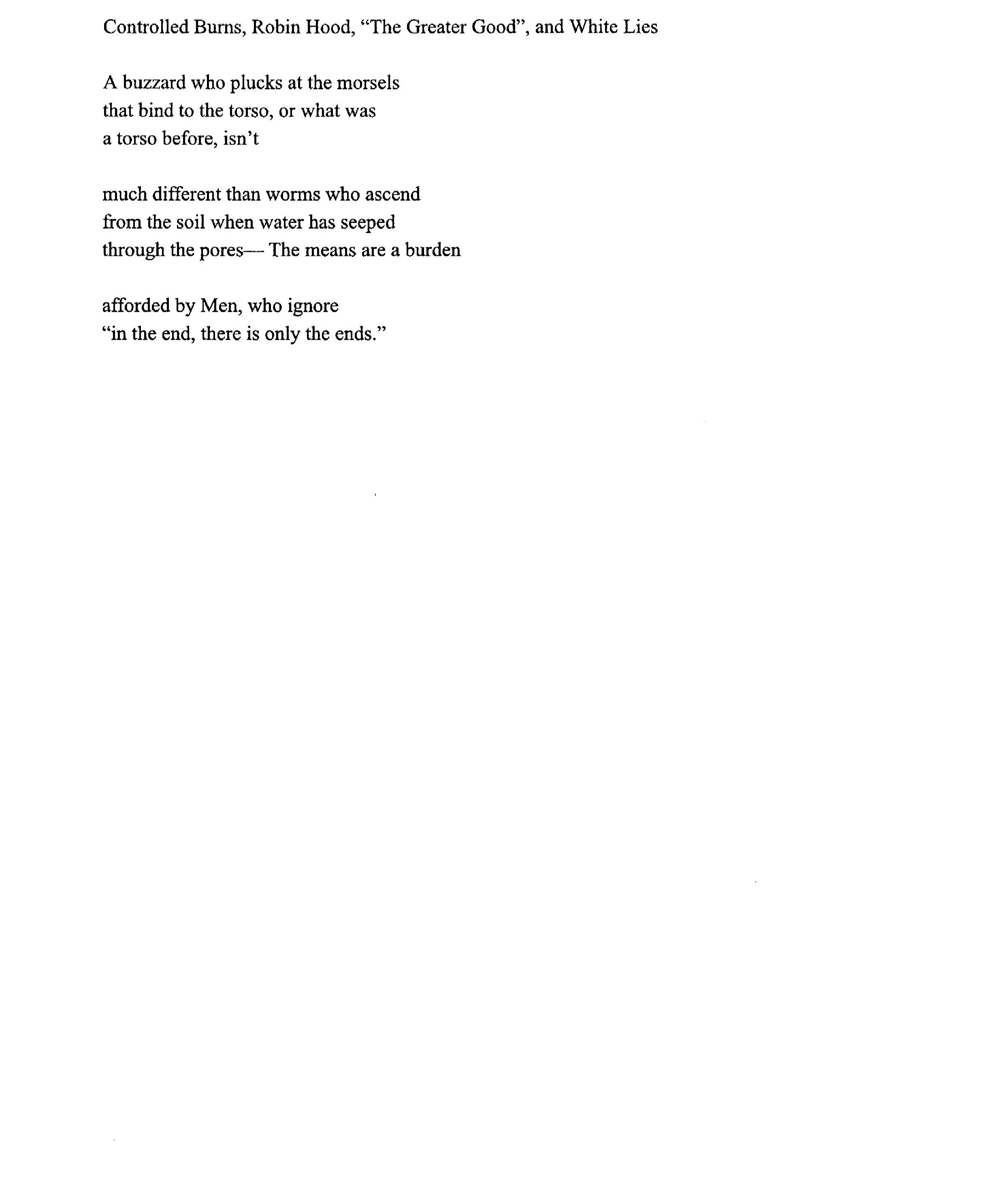 Controlled Burns, Robin Hood, "The Greater Good", and White Lies