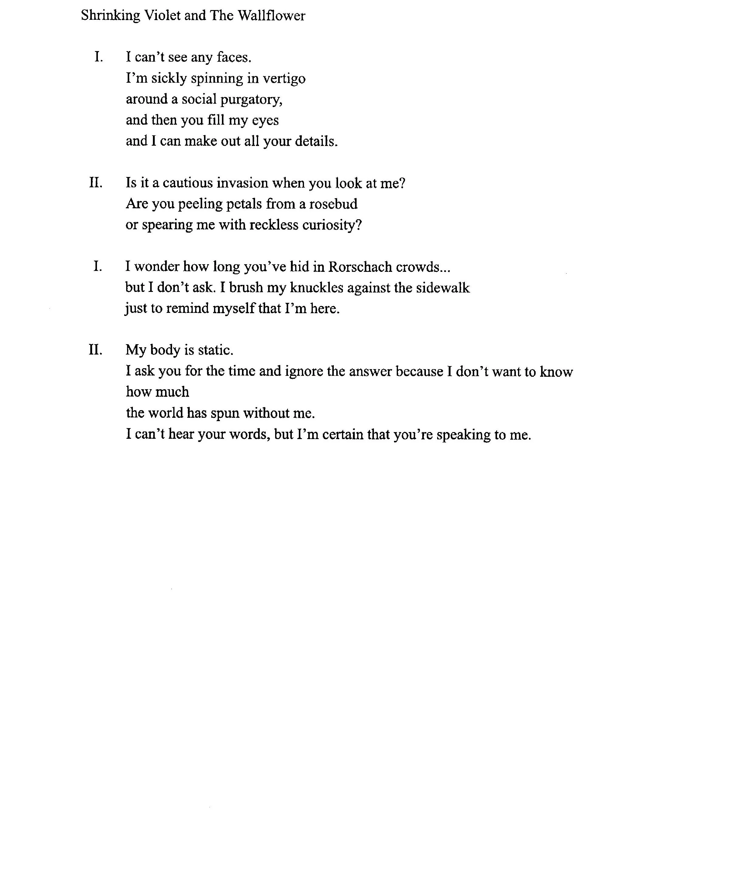 Shrinking Violet and The Wallflower